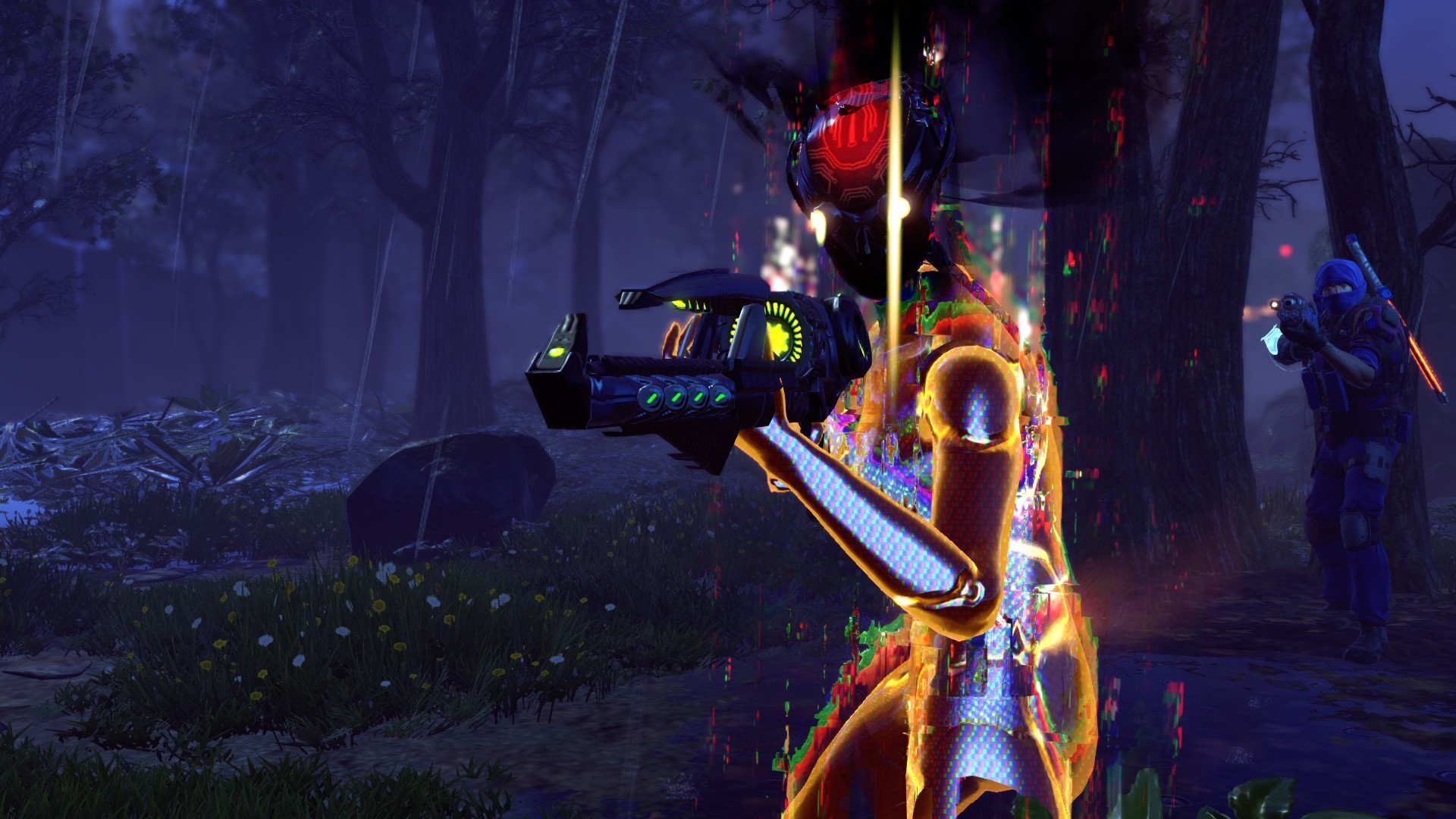 I’ve been playing a lot of XCOM2 lately, and I made my squad characters from my comic. (for those of you who don’t know what XCOM2 is: It’s a remake/ sequel of an old game XCOM: UFO DEFENSE, in which aliens have conquered earth and you lead the underground human resistance. It’s fun.) My squad was made up of Katrina (Heavy Gunner), Violet (Demolitions), Octavian (Hacker), Lars (Medic), Orion (Sniper), and another character, who will be the next introduced, was the leader. Also, there’s an enemy in the game (which I absolute despise due to their ability to clone themselves when injured) called a codex, and their “head” (they’re robotic) looks a lot like violet’s mask: (sorry about the poor image quality, it’s the best I could find. And yes, The blur is intentional – they look kinda like what you would expect a person glitching out would look like – they’re in a state of “constant flux”.)